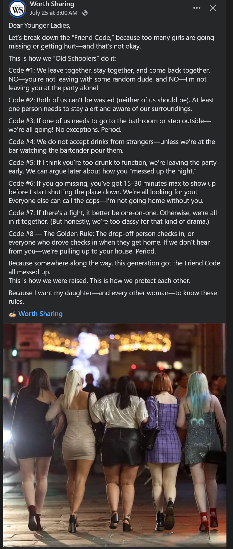 These are all incredibly important steps we MUST take to keep ourselves and our friends safe in this ever more hostile-towards-women reality we're currently living through!