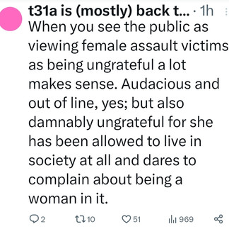 Even the way we talk about men's violence shows that society views it as an unavoidable part of life, like bad weather. The violence is talked about using passive constructions. Recently "women were getting punched in NY" - pretty sure there was an active subject there doing the punching, not just a severed hand suspended in mid-air that women accidentally walked into?
