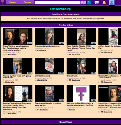 In case you're interested in more radfem centric spaces, here's another website created only for females to discuss matters from a radical feminist perspective and to upload videos : https://feminuremberg.com/