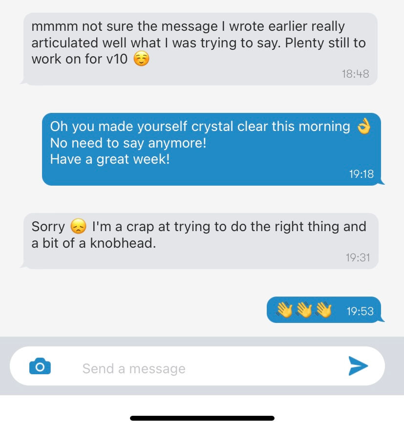I’d not heard from him since Friday and then to get this message at first when I saw his name pop up I thought he’d actually missed talking and was still interested. So to get the bottom half of the message it really upset me.